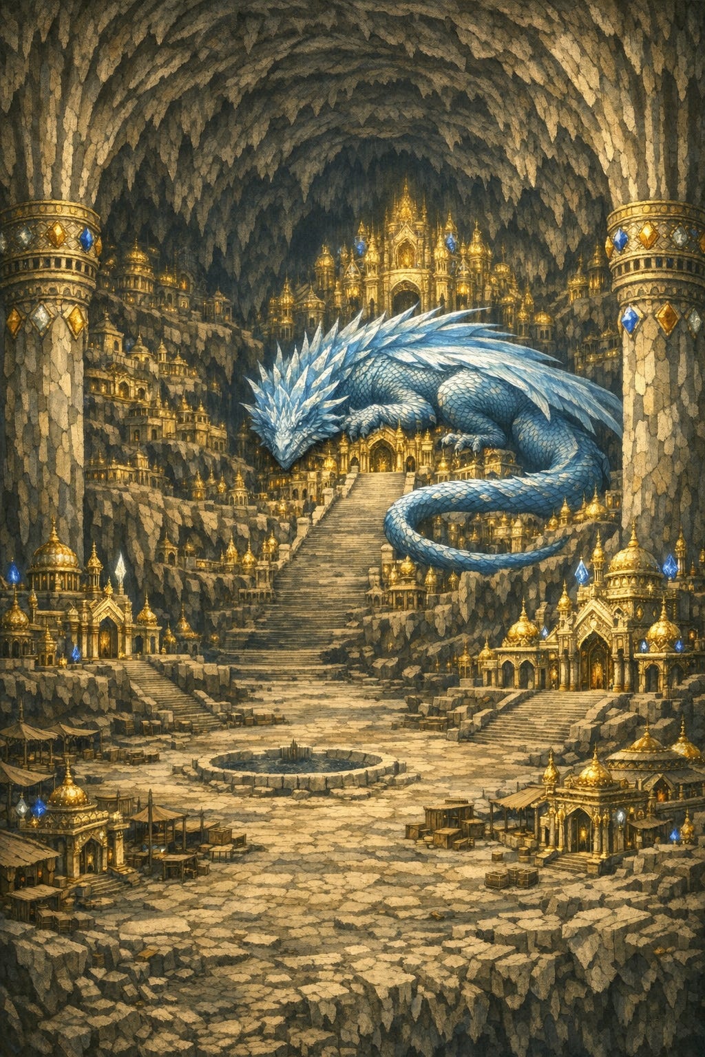 The demon was true to his word. He sacrificed Kertagh’s one true love, Kahsep. In doing so, a dragon, of crystal blue like the eyes of Kertagh himself, rose up from the stone. It looked as if it were made entirely of a crystalline jewel. Kahsep’s screams of agony, as the dragon rose up out of her, were so loud that the mountain itself shook and shivered in pain, but the deed was done.